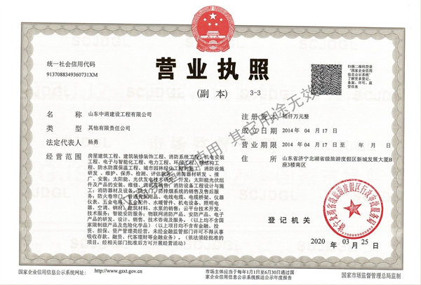 公司重視人才培養,秉承以人為本、和諧共享的發展方針。匯集了一批高水平高素質的工程專業管理人才,組建了一支實踐經驗豐富的工程技術專業隊伍,現有一級消防工程師10余人、二級注冊建造師20余人,高級工程師、工程師及助理工程師等30余人,經國家相關部門培訓合格的重點崗位專業技術人員50余人。目前已在濟南、青島、日照、濰坊、東營、德州、臨沂、淄博、菏澤、棗莊、滄州、新疆等地設二十余家分公司。
